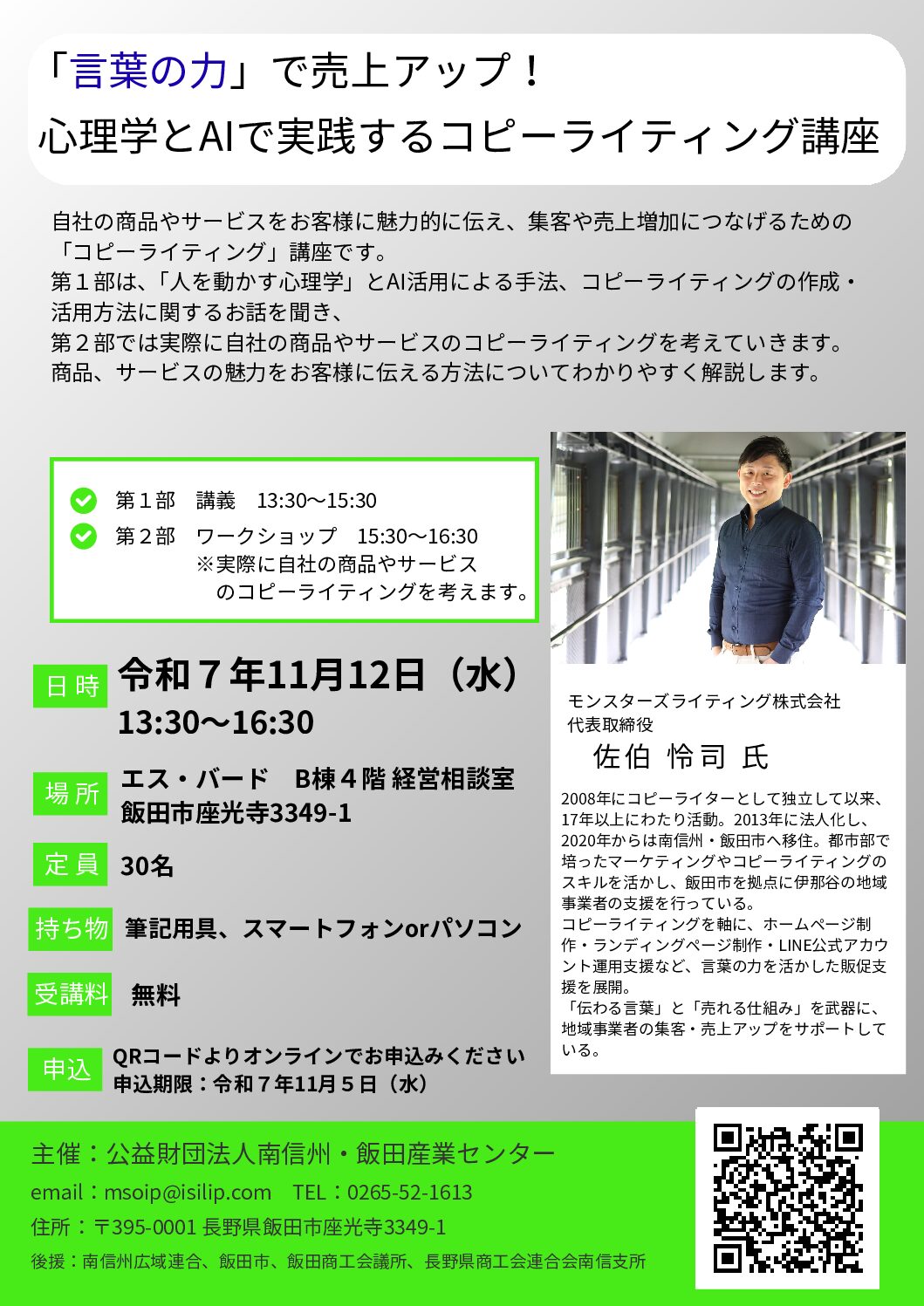 会場:飯田市役所本庁舎3階C311会議室(オンライン併用)