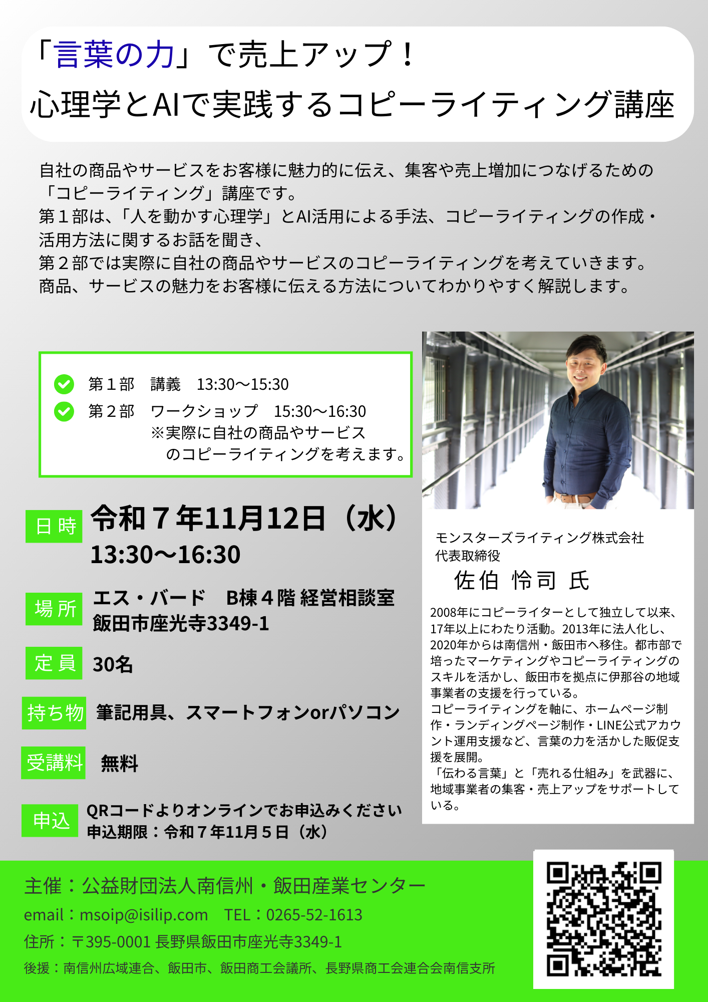 (公財)南信州・飯田産業センター TEL.0265-52-1613 / FAX.0265-24-0962